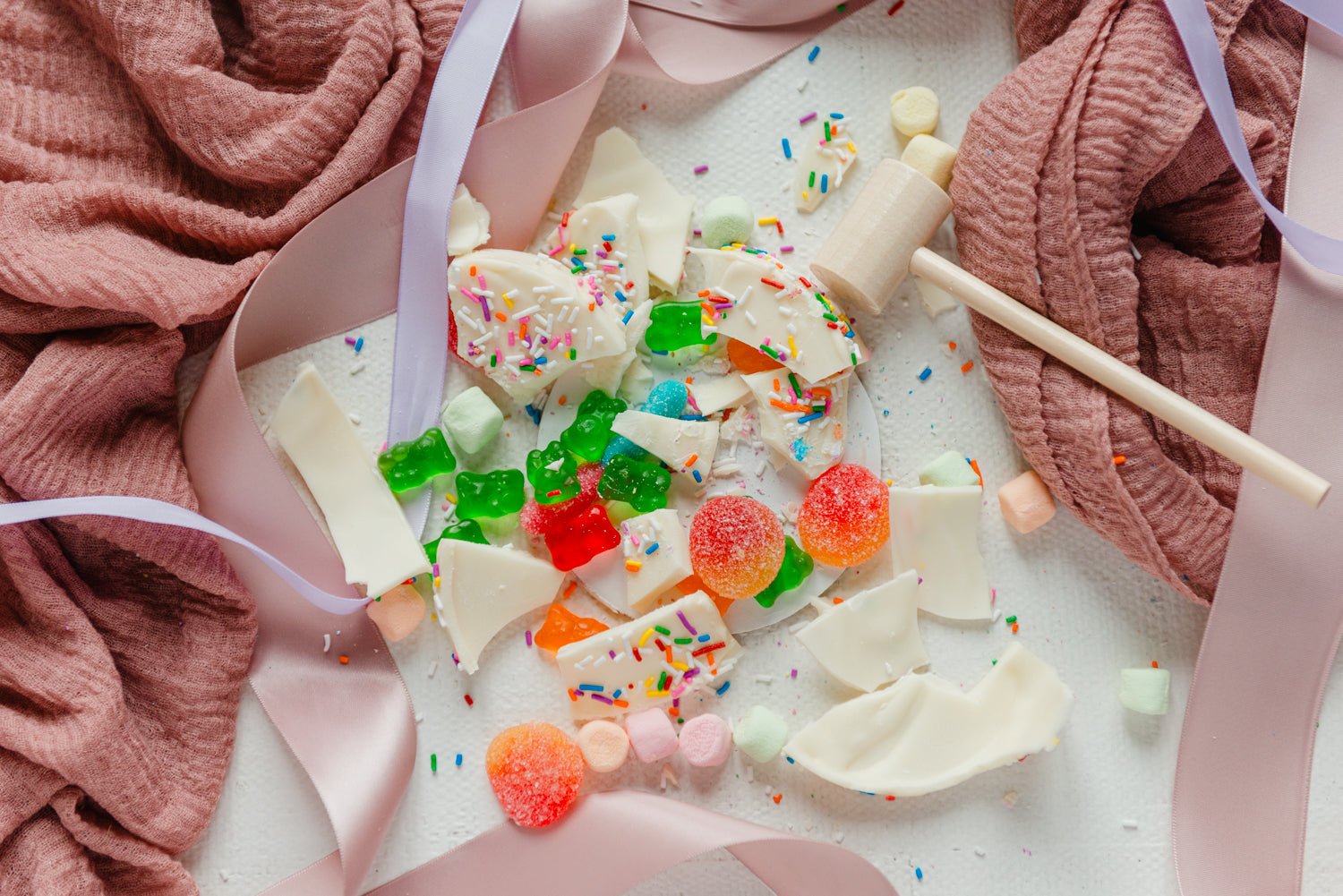 - A Fun Smash Cake filled with an assortment of candies + a wooden mallet for smashing